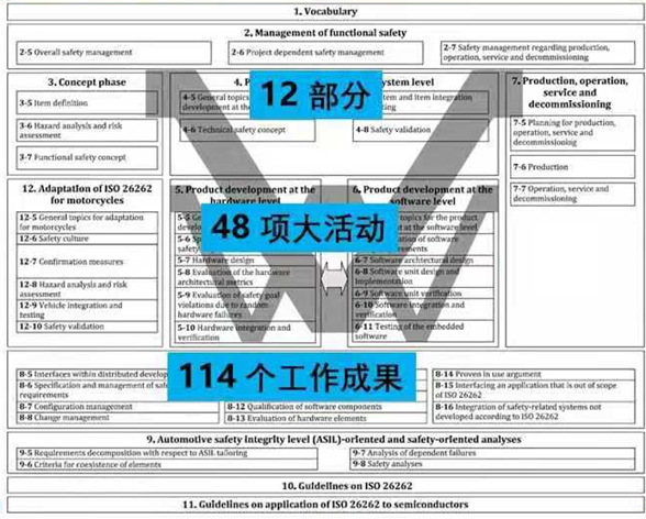 ISO 26262是道路车辆功能安全的国际标准,专注于电子电气系统的安全相关功能。该标准源于IEC 61508,并于2011年首次发布,2018年更新第二版,其中国标对应版本为GB/T 34590。ISO 26262适用于最大总重不超过3.5吨的乘用车,涵盖从概念、开发、生产、运营到报废的整个产品生命周期,致力于通过系统化的流程和方法确保汽车电子系统的功能安全。